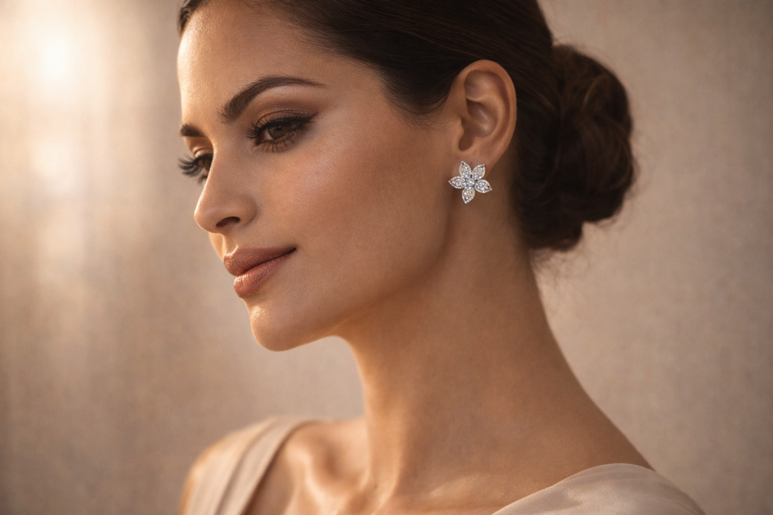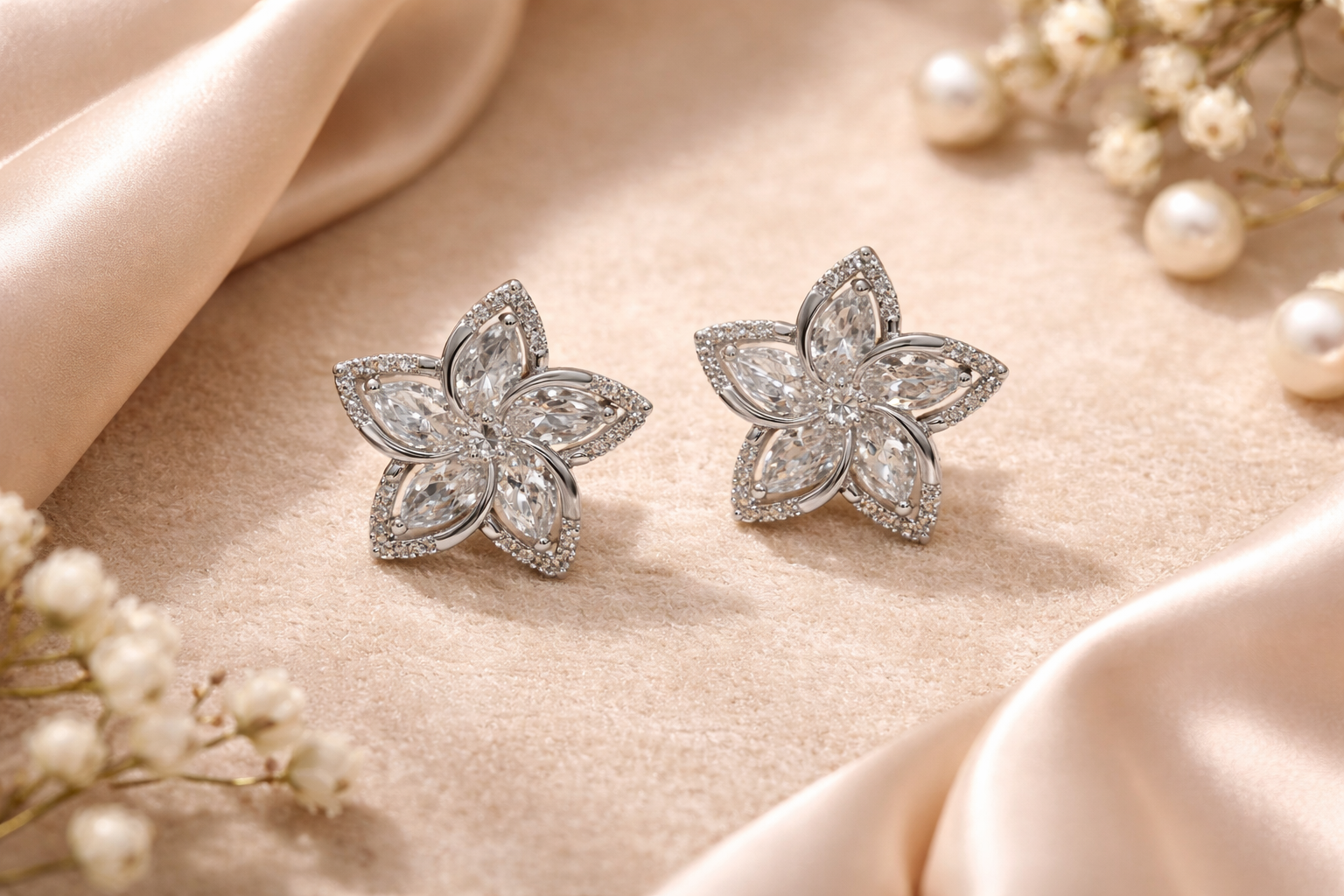 Perfect for weddings, festive occasions, office wear, and evening parties, these floral diamond stud earrings bring effortless glamour to both traditional and modern outfits. Whether paired with a saree, gown, or chic western attire, they add the perfect touch of class and femininity.