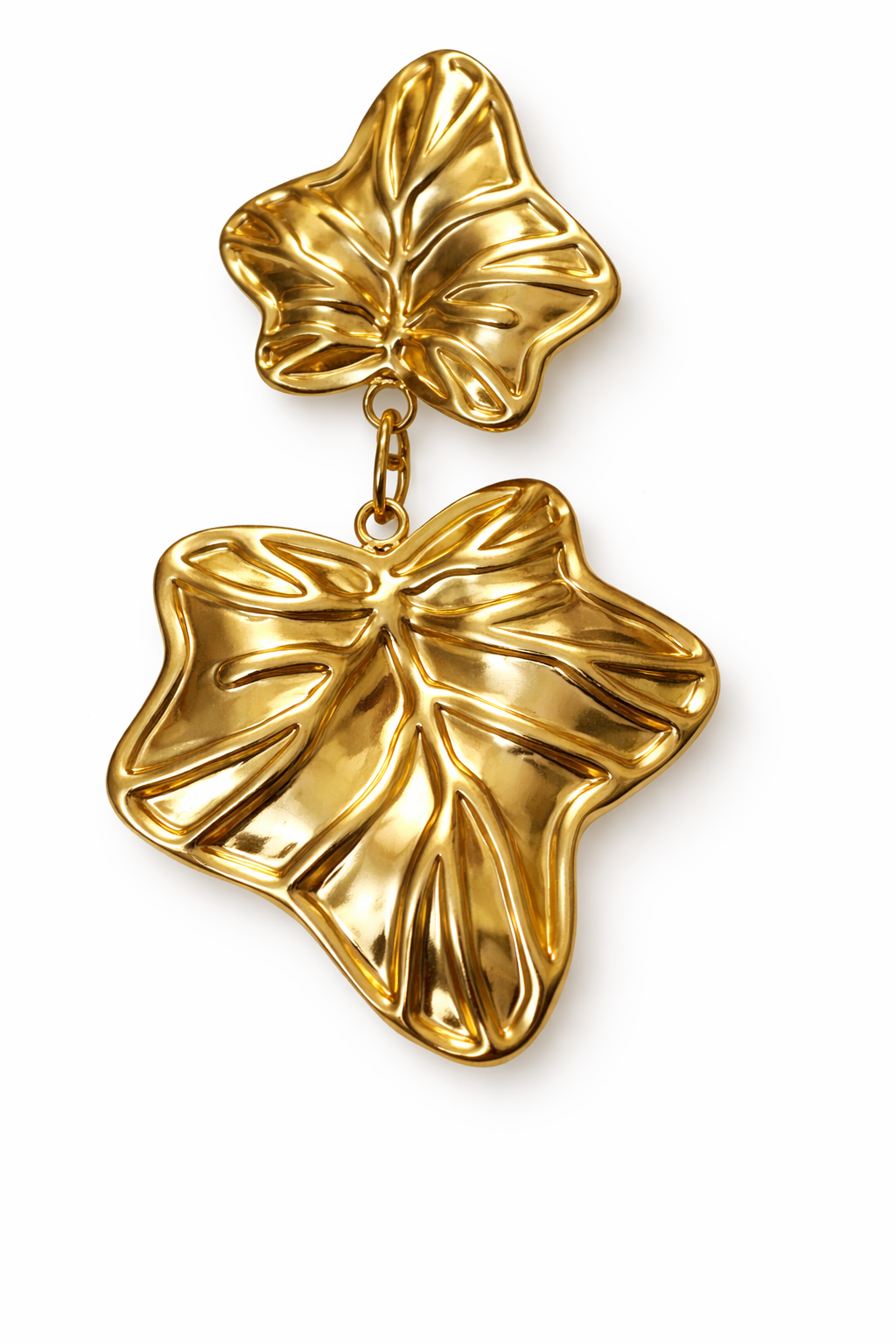 Bring a touch of nature-inspired elegance to your jewelry collection with the Rivaas Gold Leaf Drop Earrings. Designed with beautifully sculpted leaf shapes, these statement earrings showcase a modern botanical aesthetic combined with a luxurious gold finish.